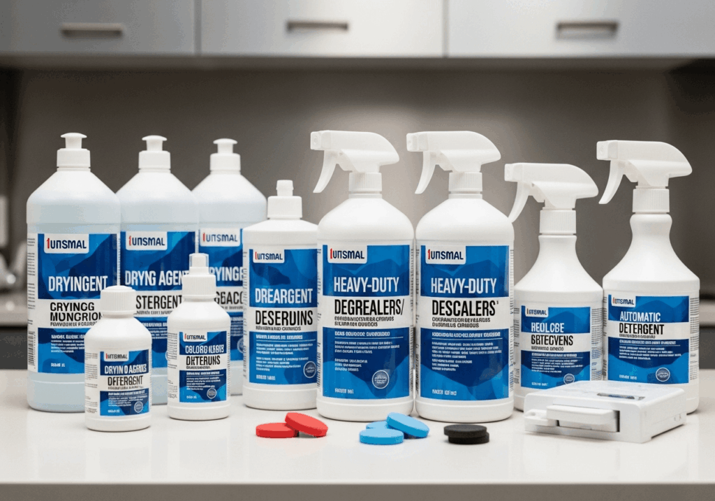 - Detergentes e secantes para máquinas de lavar louças;